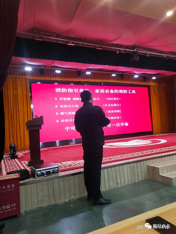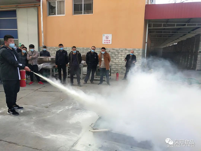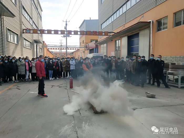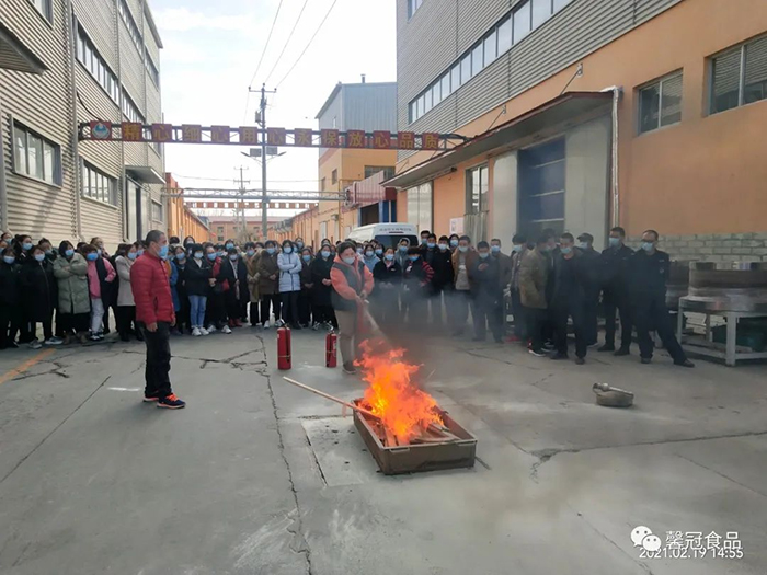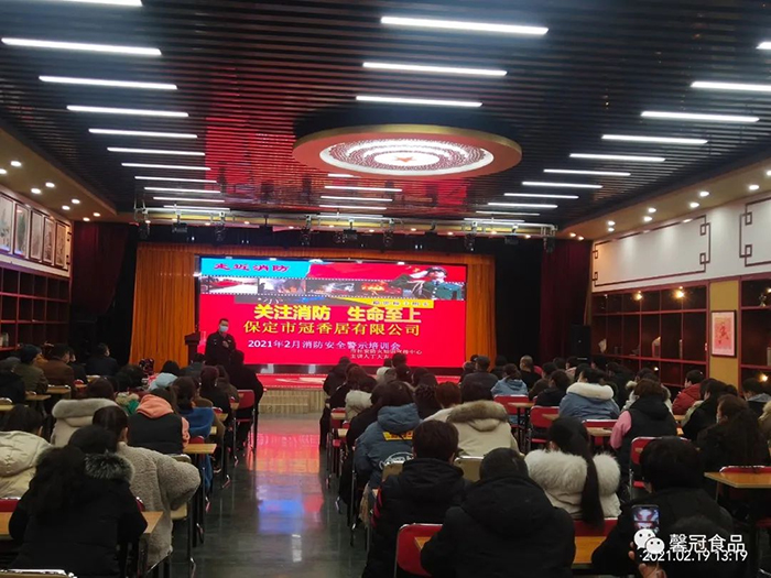 開工在即,為了增強員工消防安全意識,提高員工檢查、消除隱患的能力、撲滅初期火災的能力以及火場逃生和引導疏散的能力,保定馨冠食品有限公司、保定市冠香居食品有限公司于2021年2月19日在公司文化館會議大廳召開“2021年消防安全培訓大會”。
