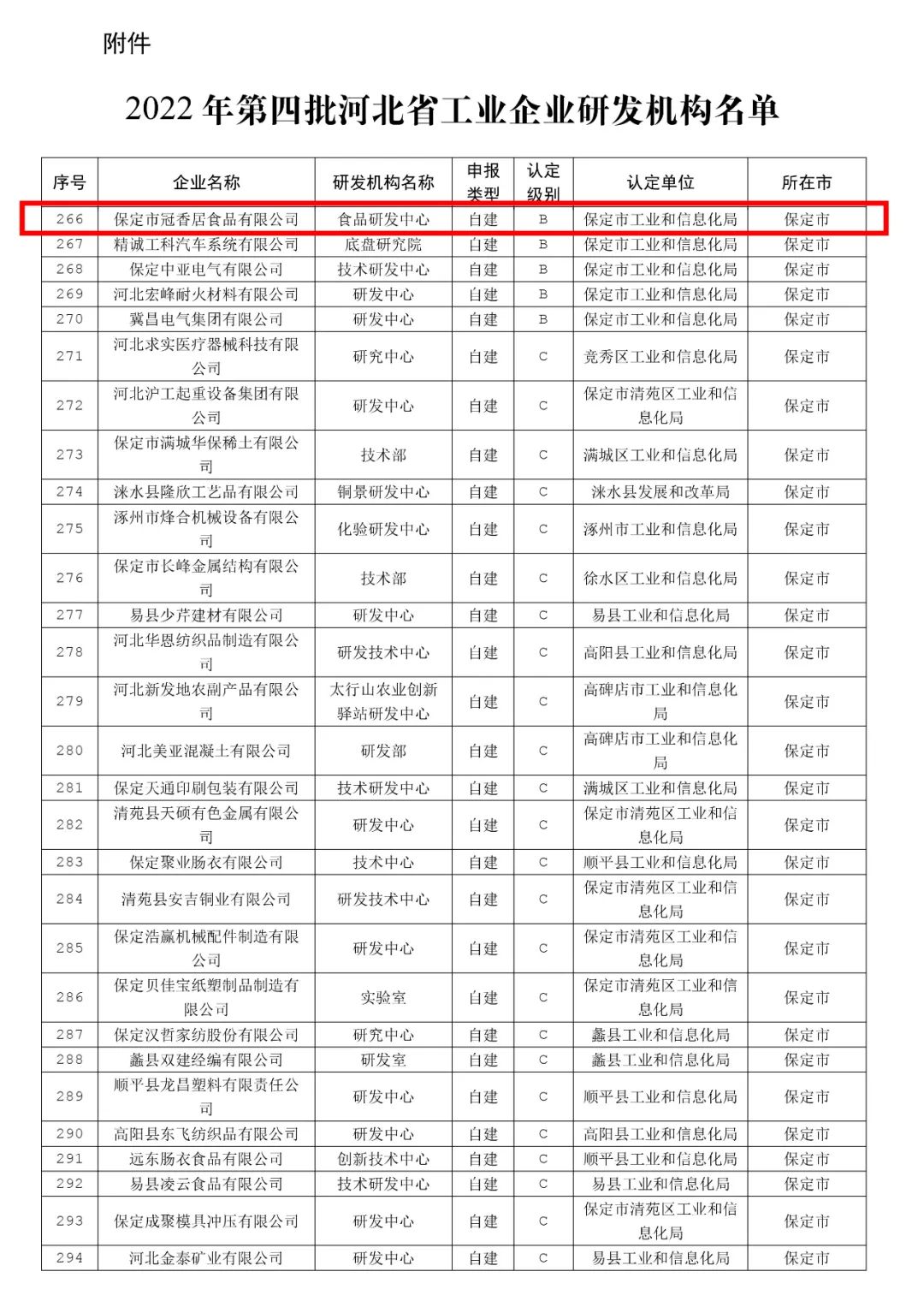 恭喜冠香居公司榮獲2022年第四批河北省B級工業(yè)企業(yè)研發(fā)機構(gòu)